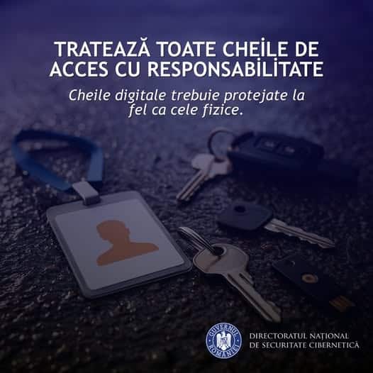 Directoratul Național de Securitate Cibernetică (DNSC) subliniază că parolele, token-urile și badge-urile de acces reprezintă „cheile” către infrastructura digitală, iar acestea trebuie protejate cu aceeași atenție ca obiectele fizice. Pierderea sau divulgarea lor poate duce la acces neautorizat și compromiterea sistemelor.