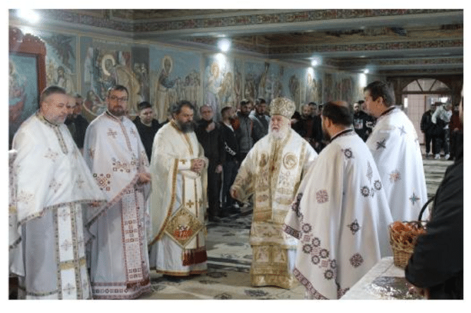 La capela penitenciarului, dedicată Sfinților Apostoli Petru și Pavel, Preasfințitul Visarion, însoțit de un sobor de preoți și diaconi, a oficiat Sfânta și Dumnezeiasca Liturghie. Aceasta a reunit un număr semnificativ de deținuți, transformând ziua sărbătorii într-un veritabil pelerinaj interior.