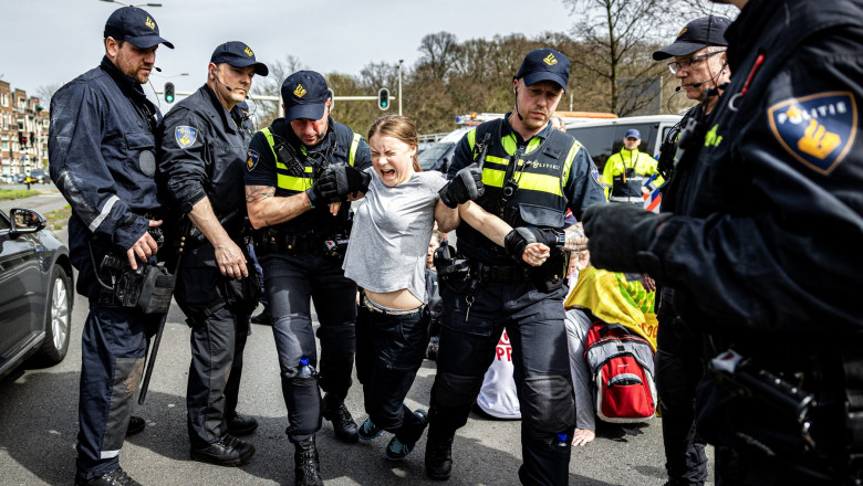 Greta Thunberg, reținută în timpul unui protest în Haga organizat de activiștii de mediu