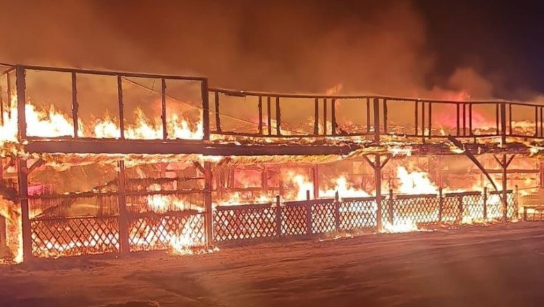 Incendiu masiv la terasa de pe plaja Corbu: Două persoane suferă de atac de panică, o mie de metri pătrați distruse de flăcări!