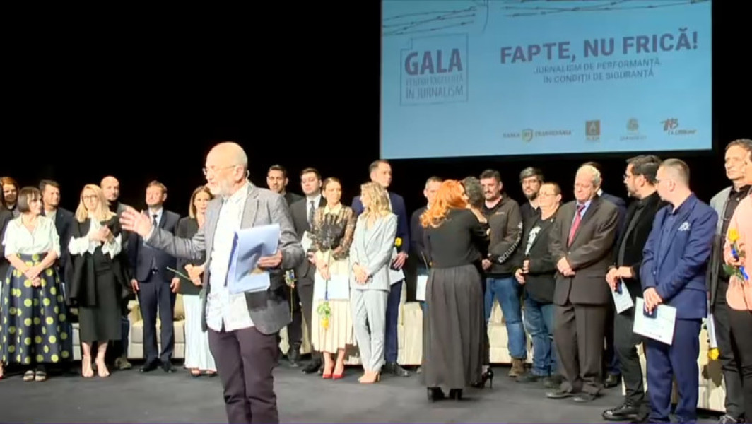 Gala „Fapte, nu Frică”, organizată de Consiliul Național al Audiovizualului, s-a încheiat cu remarcabile premii pentru jurnaliștii care s-au îndrăznit să meargă în zona de conflict. Alex Rotaru, Vali Stan și Cristina Cileacu au fost recunoscuți pentru curajul lor de a aduce în atenția publicului imagini din Ucraina și Israel, două țări aflate în plin război.