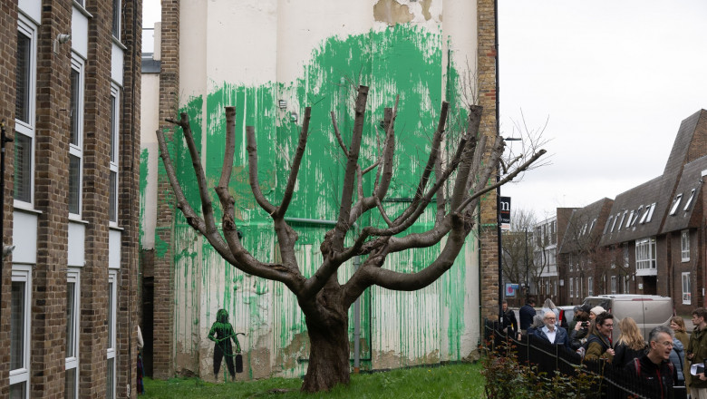 Pictură murală semnată de Banksy apare peste noapte pe o clădire rezidenţială în nordul Londrei"
