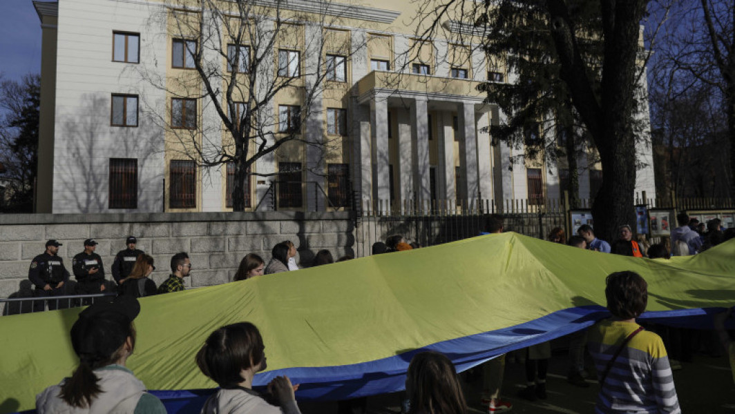 Un protest a avut loc și în fața sediului ambasadei Rusiei, unde participanții s-au adunat pentru a-și exprima nemulțumirea față de situația din Ucraina. Aceștia au cerut respectarea Convenției de la Geneva și au condamnat acțiunile Rusiei, care au dus la moartea a sute de copii ucraineni.