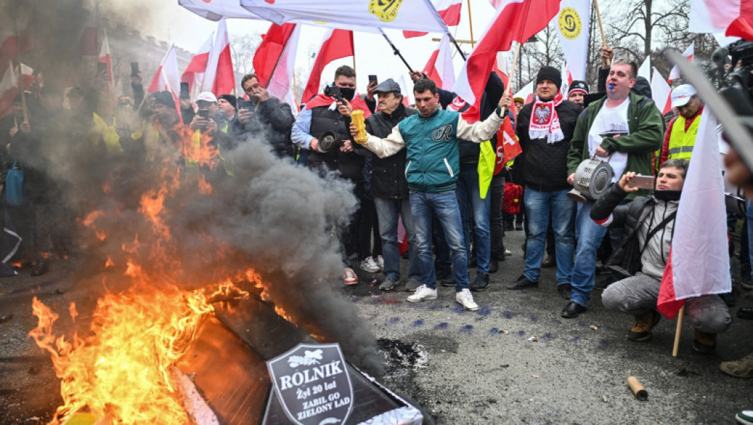 Agricultorii s-au adunat în fața biroului premierului Tusk, unde au ars cauciucuri, au folosit petarde și fumigene. Ei au adus cu ei un sicriu pe care au scris mesajul "Fermier, am trăit 20 de ani, am fost ucis de Pactul Verde" al UE. Sicriul a fost incendiat și aruncat spre sediul guvernului, iar forțele de ordine au intervenit pentru a potoli situația. Potrivit presei poloneze, unii manifestanți au ars și drapelul UE.